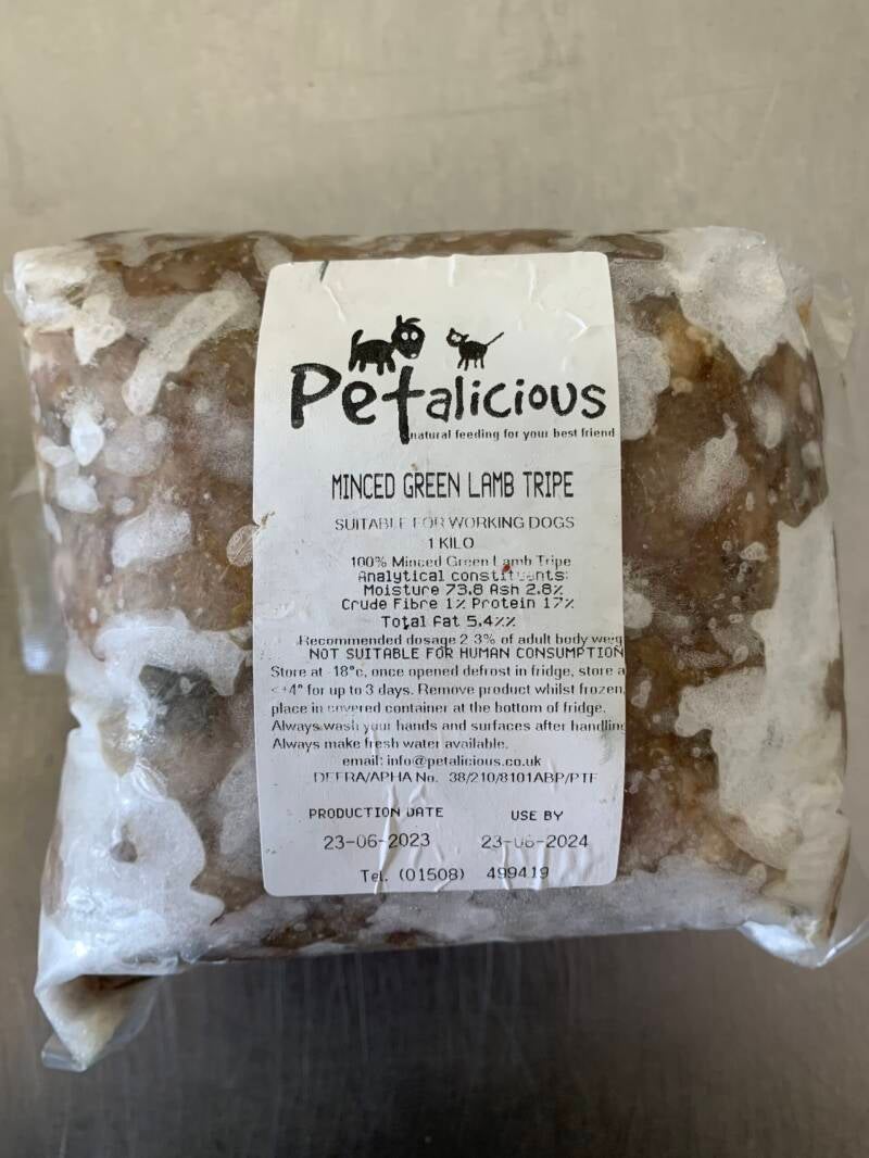 Petalicious Lamb tripe is manufacture using fresh UK Lamb tripe, it is a leaner choice than beef tripe but is still packed full of the same superfood benefits including Probiotics, enzymes Omega 3, omega 6 and high in proteins.