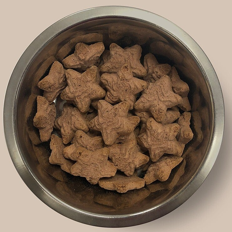 Grain Free Stars with Cheese, a delicious, oven-baked biscuit treat for dogs.